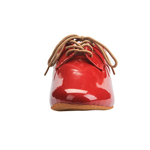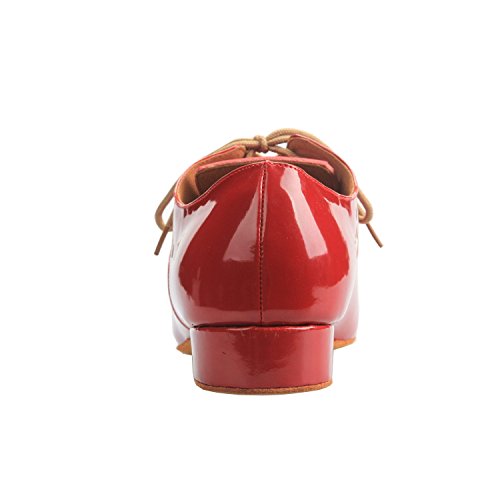 MINITOO QJ801 Mens Lace-Up pelle moderna Salsa Tango sala da ballo latino festa di nozze scarpe da ballo, Rosso (Rosso 1 Tacco), 39 1/3 EU
