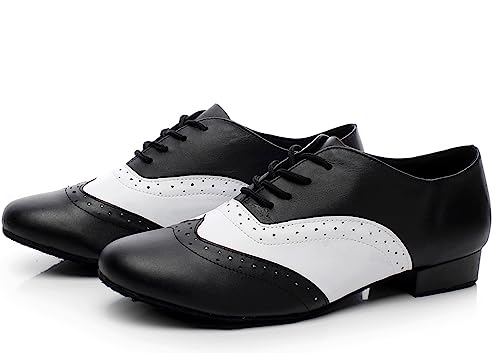 MINITOO Scarpe da Ballo Uomo Standard Pelle Nero/Bianco Latino Tango Scarpe TH9011 EU 43