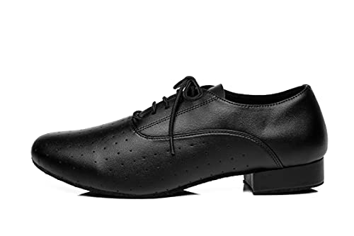 MINITOO Uomo 1.5" Standard Tacco Traspirante Pelle Scarpe da Ballo Latino Salsa Nero EU 38