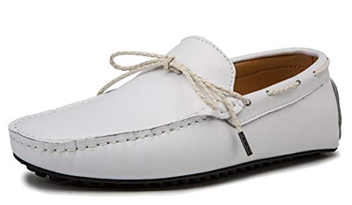 Minitoo YY2033 - Mocassini da uomo in camoscio con nodo, Bianco (bianco), 45 1/3 EU