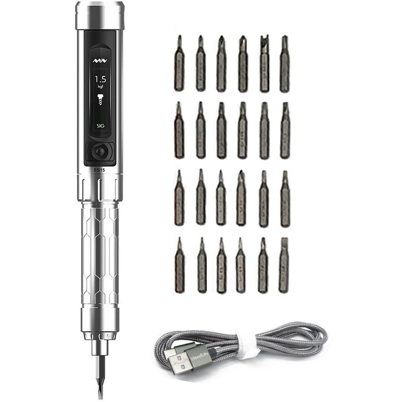 Questo cacciavite ES15 è un nuovo tipo di cacciavite elettrico intelligente con modalità di controllo del movimento intelligenti, che può fornire agli utenti un'esperienza di utilizzo migliore. Questo strumento può essere ampiamente utilizzato per la manutenzione quotidiana, se ne hai bisogno, vieni a provarlo, non ti deluderà. Caratteristiche: Tre disponibili modalità: Questo ES15 con tre modalità tra cui scegliere: controllo intelligente del movimento, direzionale in avanti e direzionale all'indietro. La modalità di controllo del movimento intelligente adatta per riparazioni rapide e due modalità direzionali adatte per lo smontaggio e l'installazione. La funzione di impatto può garantire che tutte le viti siano posizionate con una coppia precisa. /> La sensibilità e la velocità di il riconoscimento del movimento può essere regolato in base ai diversi scopi di manutenzione. Funzione anti-attaccamento (ritiro): appositamente progettata per viti esagonali per evitare che la punta del