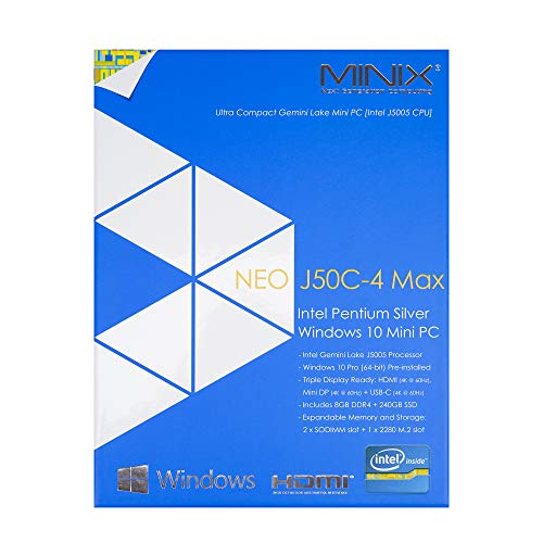 MINIX Mini PC NEO J50C-4 Max, Windows 10 Pro, Intel Pentium Silver, Memoria SSD da 240 GB, RAM DDR4 da 8 GB, Bluetooth 4.1