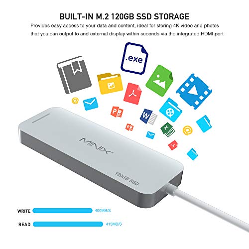 Progettata esclusivamente per Apple MacBook, Apple MacBook Air e Apple MacBook Pro, la memoria MINIX NEO include memoria SSD integrata, HDMI [4K @ 30Hz], 2 x USB 3.0 e USB-C [solo alimentazione] in alluminio leggero Hub che si adatta perfettamente al tuo MacBook Apple.
