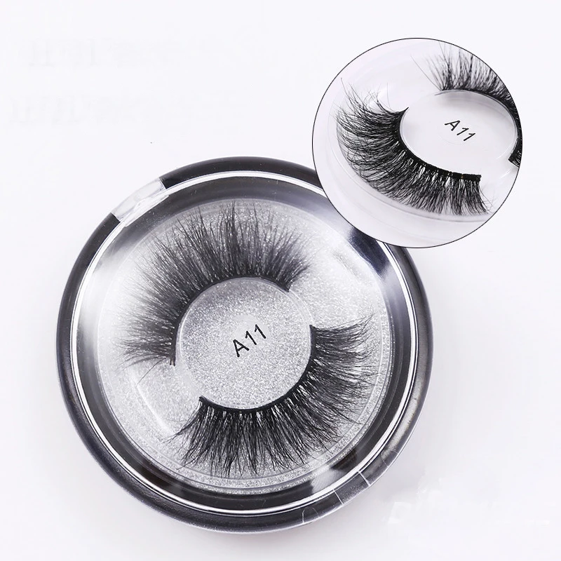 Mink Lashes 3D Mink False Eyelashes Long Lasting Lashes Crisscross Natural Mink Eyelashes Round box Glitter Packaging 1 Pair A11