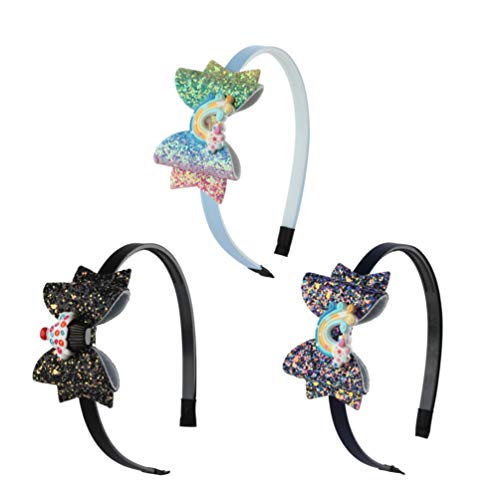 Minkissy - Cerchietti per capelli glitterati con fiocco arcobaleno, in plastica, per bambine e ragazze, 3 pezzi (versione 4)