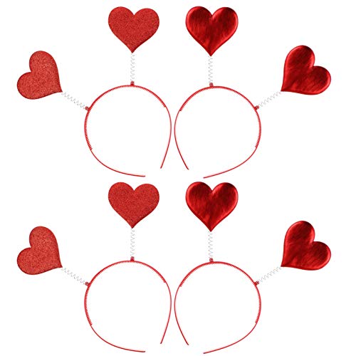Minkissy Cerchietto per capelli con cuore, 4 pezzi, per San Valentino, cuore rosso, con testa rossa, per donne e ragazze