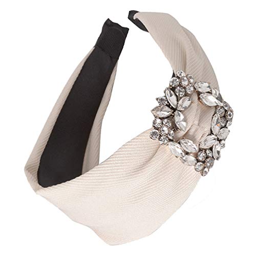 Minkissy Fascia Larga Strass Cristallo Cerchietto per Capelli Fascia per Capelli Copricapo Donna Donna Elastico Fascia per Capelli Accessori Gioielli Beige