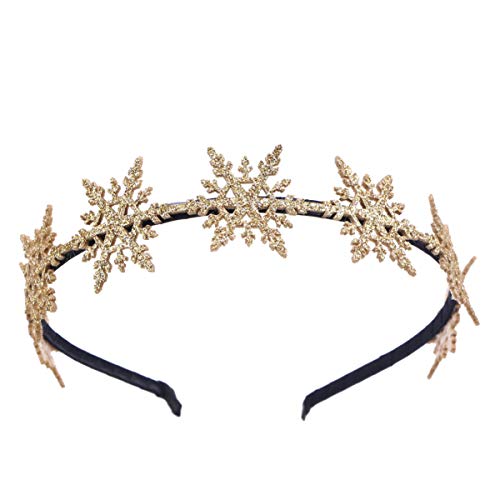 Minkissy natale fiocco di neve cerchietto glitter oro fascia elegante copricapo di Natale per ragazze donne