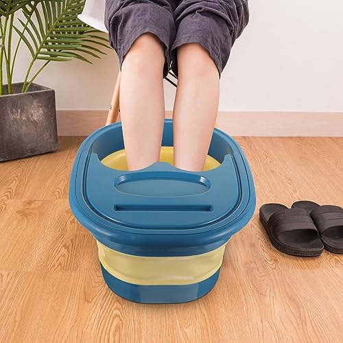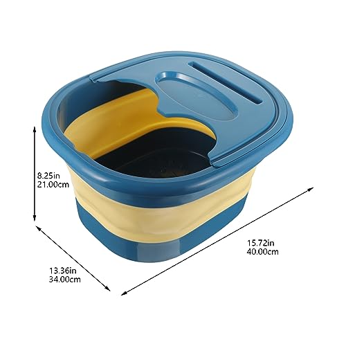 Minkissy Vasca da bagno pieghevole Benna per acqua pieghevole Benna pieghevole Pediluvio Secchio da massaggio Pediluvio Bacino per piedi TPE Blu con coperchio