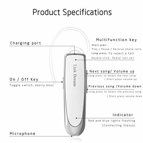Minkle Bluetooth in Ear Cuffie, 24 Ore di Conversazione Wireless HiFi Stereo Auricolari con Microfono per Smartphone, iPad, iPod, ECC.