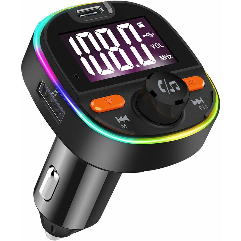 3 interfacce di ricarica e ricarica rapida PD3.0 - Trasmettitore FM Bluetooth con porta di tipo C PD3.0, il PD supporta la funzione di ricarica rapida da 18 W. La velocità di ricarica è del 70% più veloce del normale. Porte di ricarica USB: PD/18W, 5V/2.4A, 5V/2.4A Max (porta disco rigido U). Puoi caricare 3 dispositivi contemporaneamente, il che è abbastanza conveniente. 【Musica dei bassi profondi e qualità del suono HD】 Design dei bassi, basta premere il pulsante dei bassi ""EQ"", puoi goderti la musica dei bassi profondi nella tua auto ogni volta che vuoi, il che ti rende più a tuo agio durante la guida. 3 modalità di riproduzione musicale, tramite Bluetooth, U Disk (max. 32G), scheda Micro SD (max. 32G), qualità del suono HD, viaggiare non è più noioso. 【Retroilluminazione a 7 colori e schermo a LED da 1,4 pollici】Con retroilluminazione a LED a 7 colori tra cui rosso/verde/blu/giallo/viola/ciano/bianco, premere a lungo il pulsante "luce", in cui vengono visualizzati 7 colori
