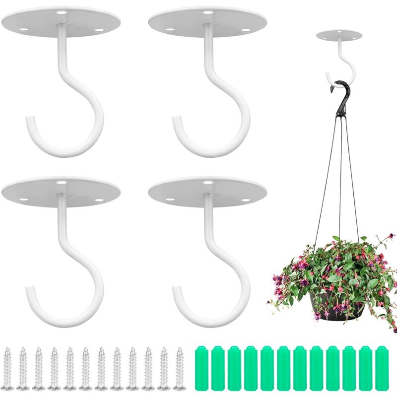 Materiale di alta qualità - Questo robusto gancio da soffitto per piante è realizzato in ferro forte e robusto, processo di verniciatura, con effetto antiruggine. Con una forte capacità di carico, perfetto per appendere interni ed esterni a lungo. [Design e colore di apertura classici] I ganci per appendere pesanti sono progettati con un'ampia apertura per appenderli facilmente. 3 fori per le viti formano una costruzione triangolare per la massima stabilità e robustezza. Il bianco classico si abbina a molti stili di decorazione. [Usi ampi] Il gancio da soffitto rotondo è perfetto per cesti di piante, piccole gabbie per uccelli, striscioni, lanterne, vasi, ecc. fiori, luci a filo, campanelli eolici, fioriere, lampioni, ventilatori a soffitto, decorazioni di carte e ornamenti. Adatto per l'uso in officina, garage, ufficio, casa, armadietto, magazzino, scuola, bar, giardino, armadio, soggiorno, balcone, cucina o corridoio. [Facile da installare] Questi versatili supporti da parete Ganci