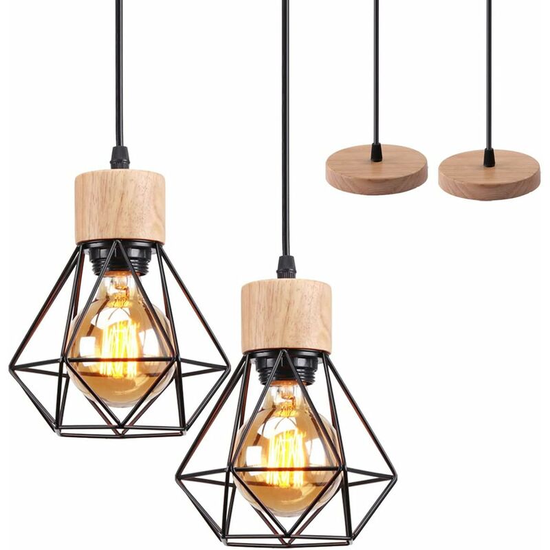 Design industriale - Il design della gabbia diamantata con venature del legno, metallo e legno si scontrano, stile vintage rustico, aggiunge un tocco industriale alla tua decorazione. 【Specifiche 【Dimensioni della lampada: 20x27 cm, diametro della base del soffitto: 10 cm;