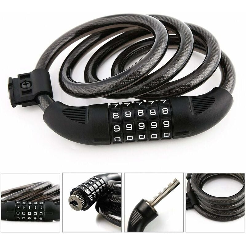 Sicuro e ripristinabile: lucchetto per bicicletta con combinazione resettabile intelligente a 5 cifre che è più sicuro di altri lucchetti a 4 cifre. Il blocco bici offre istruzioni di ripristino complete. Reimpostare semplicemente la combinazione personale desiderata. Materiali tecnici ABS di alta qualità: adotta un materiale più leggero di alta qualità, il lucchetto per bici ha un pannello di blocco ad alta resistenza, durevole ma leggero che può resistere a forti pressioni senza distorsioni. Eccellenti prestazioni del lucchetto per bicicletta: con la pregevole fattura del buco della serratura, il rivestimento in PVC e il robusto nucleo interno, il lucchetto per bicicletta può fornirti una protezione più sicura e un migliore effetto antifurto. Blocco universale per bicicletta: il lucchetto per bicicletta fornisce una staffa che può facilmente installare il lucchetto nella bicicletta. Un lucchetto a cavo ti dà più comodità, ideale per tutte le biciclette, cancelli, recinzioni