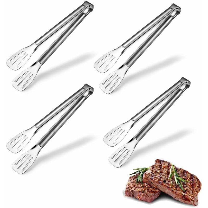 Il pacchetto include: 4 fermagli per alimenti, 1 cm di spessore, facili da controllare e da impugnare. Design antiscivolo: l'esclusivo design a tre linee può aiutarti a filtrare l'umidità dalla frutta e verdure, nonché grasso nel barbecue e altri cibi fritti. Materiale: acciaio inossidabile di alta qualità per uso alimentare, lucidato a specchio, sicuro, atossico, inodore, resistente al calore e alle alte temperature. Facile da riporre: sull'attacco superiore di questa clip da cucina è presente un anello per appenderlo, che può essere appeso per drenare l'acqua dopo l'uso Ampia applicazione: ideale per feste, cucine, barbecue all'aperto, buffet, panini, hamburger, insalate di verdure, dolci e fritti. Caratteristiche: 1. Pinza da cucina in acciaio inossidabile di alta qualità. 2. Superficie liscia, resistente e facile da pulire. 3. Cucina ideale pinze per una varietà di cibi, insalate, torte, pane, grigliate, ecc. 4. Design cavo per la filtrazione dei liquidi. 5. Impugnatura