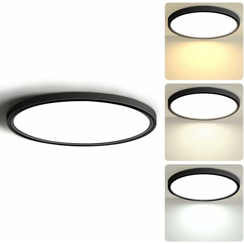 Tre temperature di colore modificabili in un'unica luce - Plafoniera a LED da incasso (cablato) con interruttore colore selezionabile, Sul retro della plafoniera Moon, puoi preimpostare la tua temperatura di colore della luce preferita (bianco caldo 2800K, bianco naturale 4000K, bianco luce diurna 6500K), 3 colori di temperatura per soddisfare le tue esigenze. I tuoi bisogni. (Nota: questa plafoniera a LED non può adattarsi al dimmer domestico). 【Design sottile e risparmio energetico】 Questa plafoniera a LED super luminosa è alta solo 2,2 cm di spessore, non sembrerà scomoda e non influirà sulla decorazione . Le plafoniere a montaggio piatto hanno una superficie liscia e priva di rigonfiamenti, che li rende adatti per una varietà di stili decorativi. Il LED da 24W è equivalente alla tradizionale plafoniera LED fluorescente da 240W. se in uso normale per 8 ore al giorno, la durata potrebbe durare più di 10 anni. fornire una grande quantità di luce uniforme e senza sfarfallio fino a 3200