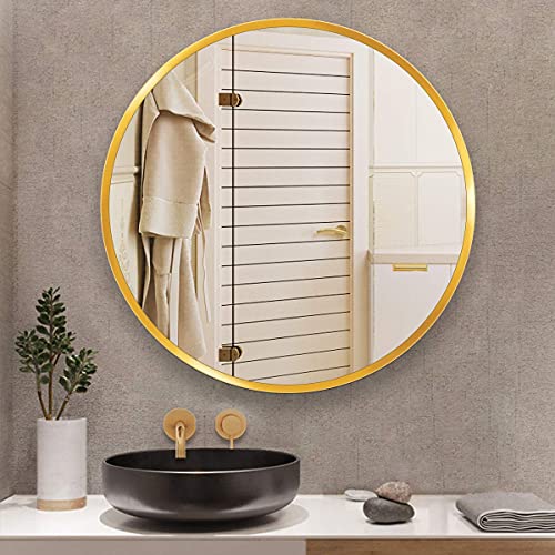 MINKUROW Specchio da Parete Rotondo da 60 cm, Grande Specchio per Il Trucco con Cornice Dorata, Specchio da Bagno con Specchio Piccolo con Ingrandimento 3x per Camera da Letto Soggiorno Bagno