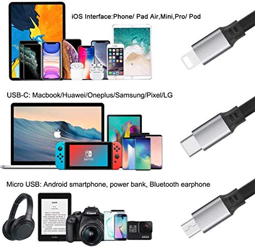 Portatile: la lunghezza ideale di 1,2 metri è ottimale per l'uso a casa, in ufficio, in auto, in viaggio e altro ancora. Il cavo retrattile 3 in 1 è molto facile da piegare e riporre nella borsa, nella borsa del laptop, in tasca, ecc.