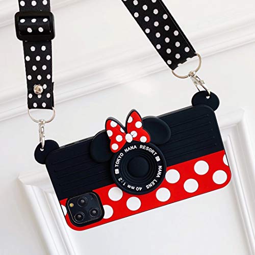 Minnie Mouse Polka Dots custodia per fotocamera in morbido gel di gomma silicone 3D Cartoon Animal, ragazze donne Cool Lovely Cute Cases with Rope (Minnie Mouse,iPhone 12/iPhone 12 Pro -15,5 cm)