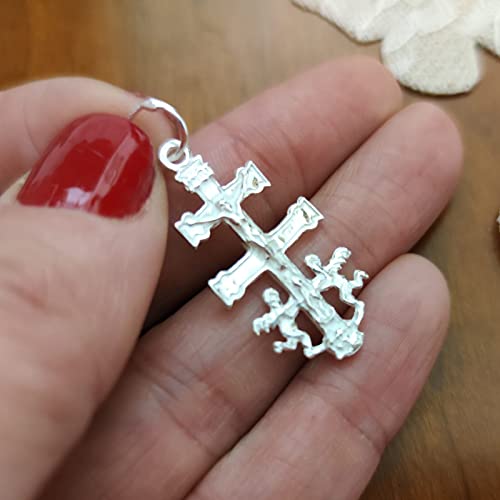 Minoplata - Ciondolo a forma di croce di Caravaca, in argento Sterling, 3 cm, un gioiello per uomini e donne con un particolare valore simbolico