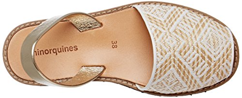 Minorquines Avarca, Scarpe col Tacco con Cinturino a T Donna, Bianco, 39 EU