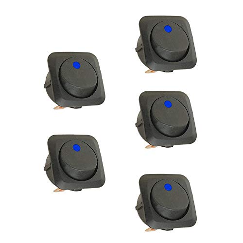 Mintice 5 Pezzi 25mm Barca Auto Rotondo Blu Led Interruttore a Bilanciere Interruttore a Levetta 12V 25A Pulsante Cruscotto On Off Impermeabile