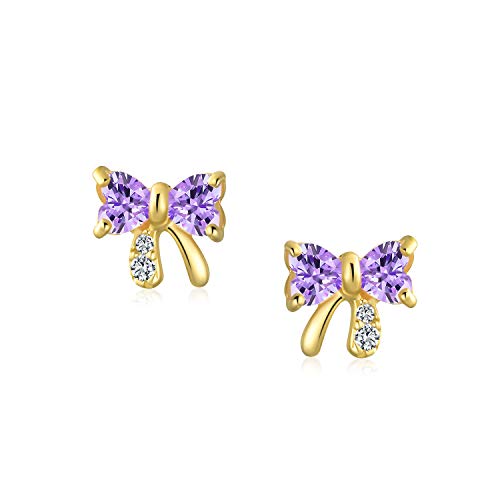 Minuscolo minimalista cubico Zirconia Lavanda Simulato Alexandrite CZ Nastro Fiocco Orecchini per borchie per le donne Vero 14K Oro Screwback