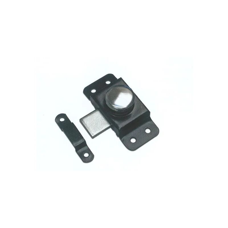 Chiusura di larghezza 30 mm. di colore zincato nero e pomolo zincato chiaro.
