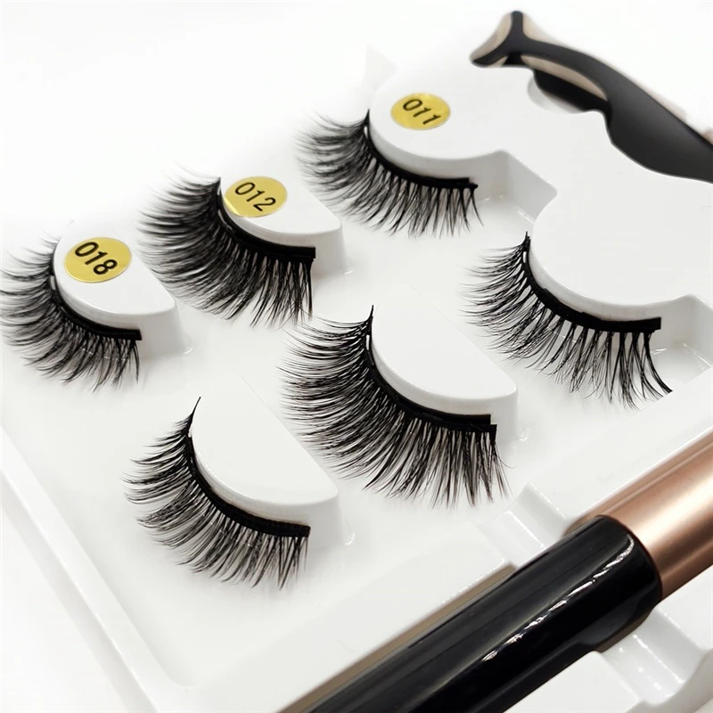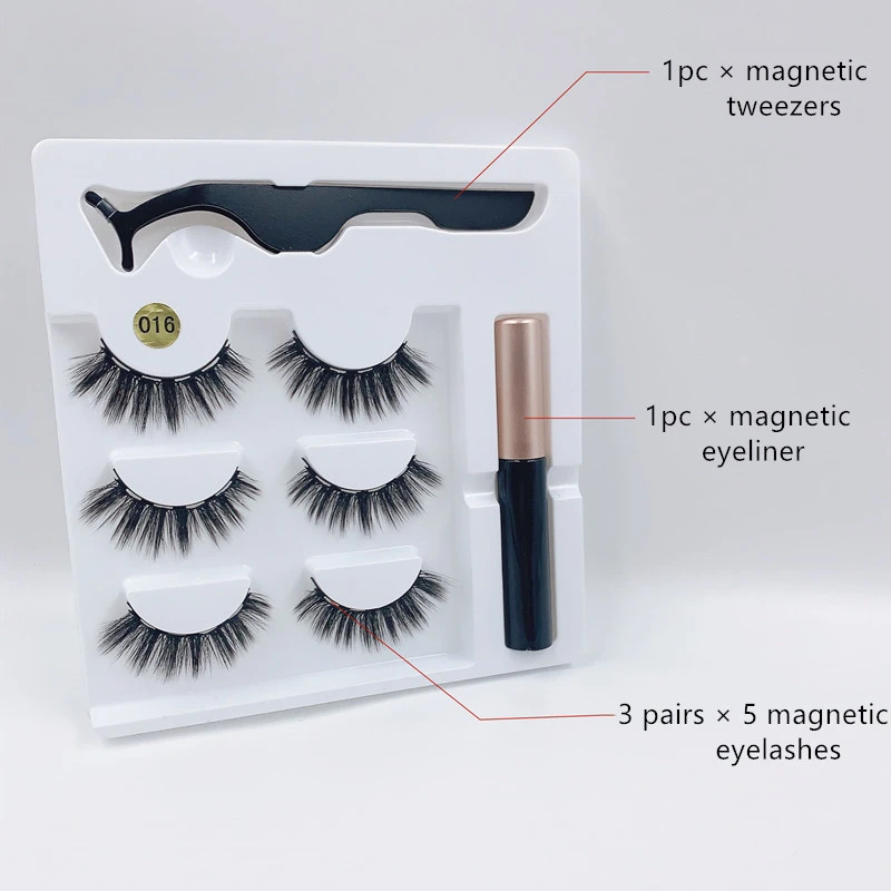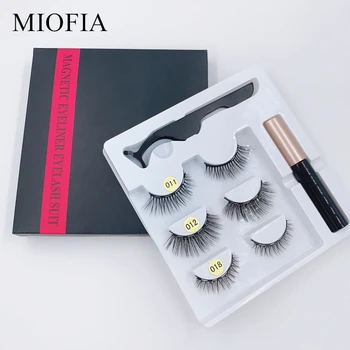 MIOFIA Magnetic Eyelashes 3D Mink False Lashes Magnetic Eyeliner 5Magnet Lashes & Eyelash Cluer Set Handmade Eyelash Makeup Tool