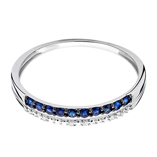 MIORE Anello da donna a doppia fila di diamanti eternità in oro bianco 9 carati/375 con pietre zaffiro blu 0,19 carati e diamanti brillanti, gioielli, Oro, Diamante