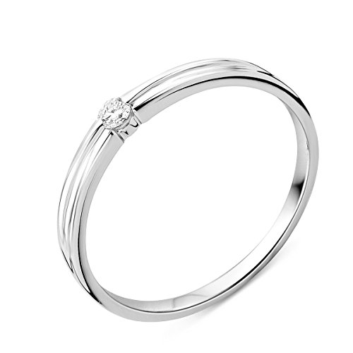 Miore - Anello di fidanzamento in oro bianco 9 kt con diamante solitario da 0,05 kt, 52 (16.6), cod. M9155R52