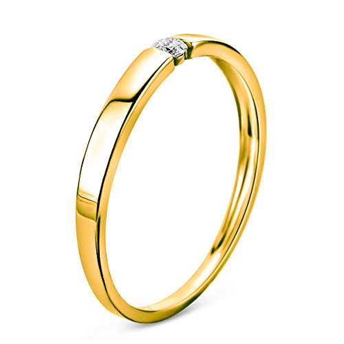Miore Anello di fidanzamento per donna in oro giallo 14 carati (585) e diamante solitario da 0,05 carati, Oro giallo, 52 (16.6), colore: gold, cod. MU4006R52