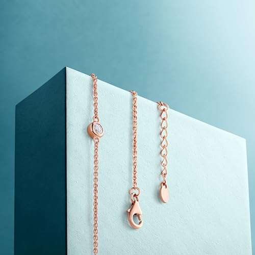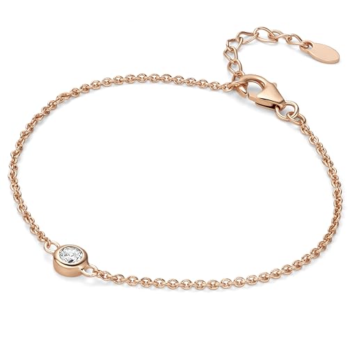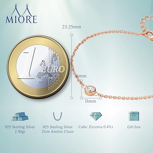 Miore Bracciale Donna in Argento Con Zircone, Catenina rolò con Zircone Solitario in Argento 925 Placcato Oro 18Kt/750. Bracciale Lungo Cm 18 con estensione a Cm 22 Braccialetto anallergico.