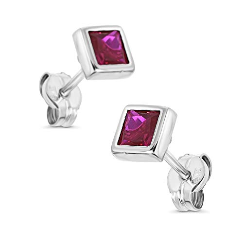 Miore Orecchini da Donna con Pietra Quadrata 9ct 375 oro bianco con Rubino Rosso