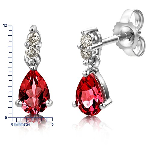 Miore orecchini pendenti 9 ct in oro bianco 375 con rubini rossi piriformi e diamanti brillanti 0.08 ct