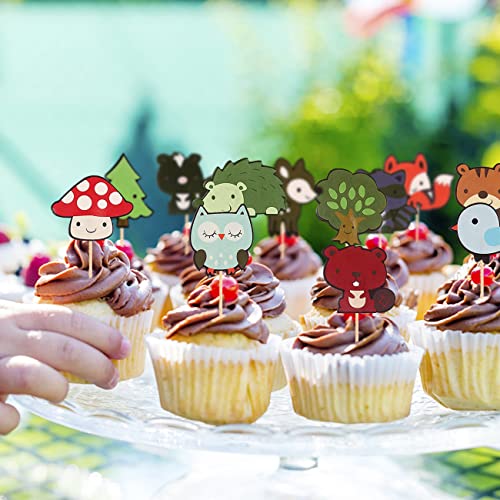 Miotlsy Animale Torta Toppers - Giungla Cupcake Topper Decorazioni Ragazzo Tema Torte o Spiedini Forma Cibo Frutta Topper per Animale Festa del Bosco 48pezzi
