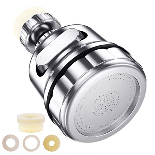 [Rotazione a 360]: Aeratore da cucina con girevole a 360 testa a sfera per regolare, Aiuta a pulire facilmente qualsiasi angolo del lavandino e a lavare e pulire facilmente piatti, padelle, pentole, frutta, ecc. Adatto per rubinetto con diametro interno 21,5-24 mm, o diametro esterno 20-22 mm. Se il calibro del rubinetto non è in questa gamma, è possibile utilizzare il convertitore all'interno dell'accessorio.
