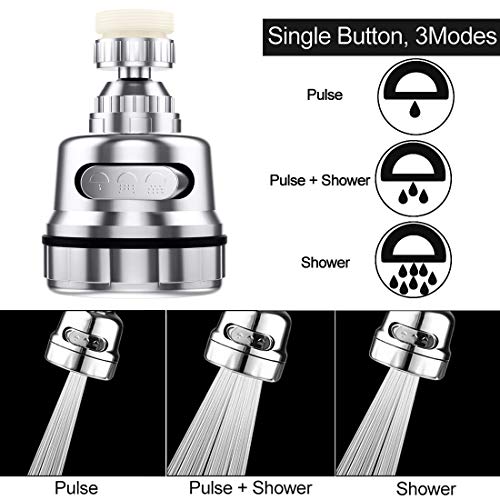 Miotlsy 360 ° Girevole Lavello Rubinetto Gorgogliatore prolungato Aeratore Rubinetto a risparmio idrico Rubinetto filtro Regolatore spray Testa ugello Per Cucina Bagno,3 Modalità, d'argento