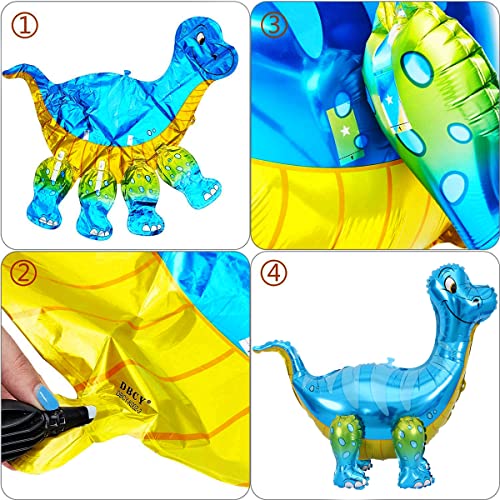 Set di dinosauri: il palloncino di dinosauro 3D contiene 4 grandi palloncini in film di poliestere a forma di dinosauro, 1 decorazione di lettere di compleanno, la quantità e lo stile sono sufficienti per la decorazione o l'investimento
