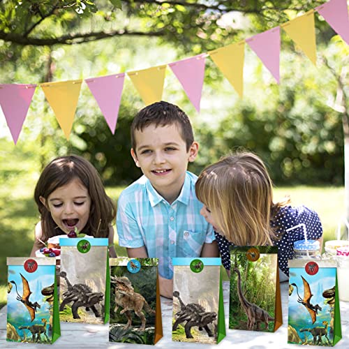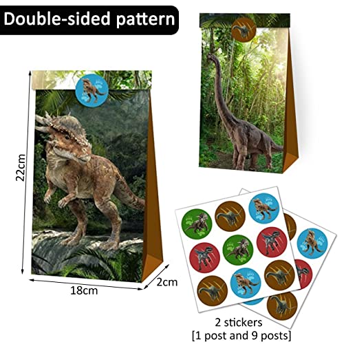 Miotlsy Sacchetto Regalo Dinosauro - Sacchetti di Carta Dinosauro 12 PCS Caramella Sacchetto 18 Adesivo Decorazione per Bambini Feste Ragazza Ragazzo Baby Shower Torte di Conservazione Pasticcini