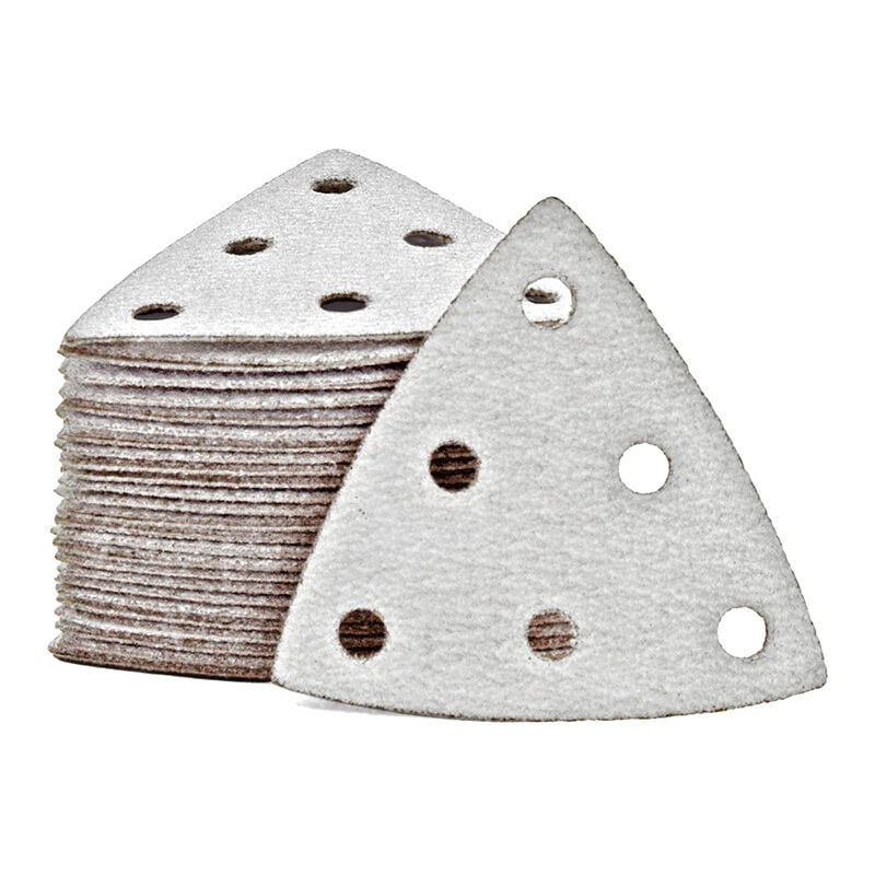 Carte abrasive velcrate MioTools per Festool, G320 Informazioni sul Prodotto Fogli abrasivi MioTools a buon prezzo per levigatrici a delta, levigatrici triangolari e levigatrici multifunzione Corindone normale ricoperto di stearato: Il rivestimento con specifici principi attivi rallenta la disgregazione mediante il polvere Ottimo rapporto prezzo-rendimento Risultato di levigazione armonico grazie a una distribuzione ottimizzata dei grani abrasivi Sostituzione rapida delle carte abrasive autoadesive Dati tecnici Supporto: Carta UltraFlex Dimensioni: 93 mm Tipo di abrasivo: Fogli abrasivi Attacco: Sistema a strappo Grana classificazione: Fine Foratura: 6 fori Tipo di grana: Corindone normale Applicazione Legno: 7/10 Gesso, stucco: 8/10 Colore, vernice: 8/10 Legenda: 10 - molto adatto, 0 - non adatto