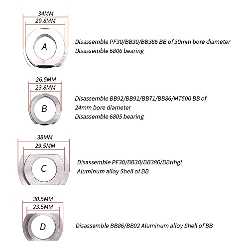 Larges utilisations: convient pour retirer les supports inférieurs de type press-fit BB86/PF30/92/386 et installer la plupart des roulements de pédalier filetés creux.
