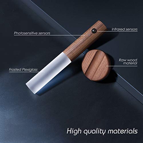 Mipa Applique da parete interna con rivelatore, lampada multi-funzionante in legno, lampada da comodino design smontabile con supporto magnetico, luce notturna LED ricaricabile portatile (Walnut)