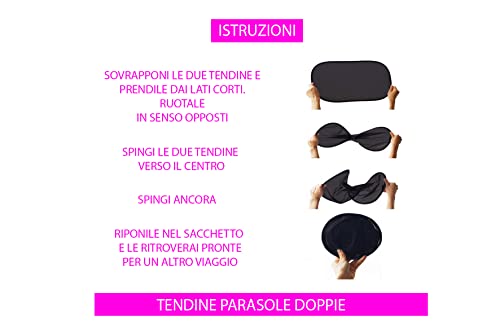MIPAL 2 Tendine Parasole Auto Bambini - Fissabili con Ventose per Vetro Incluse - Coppia di Coprisole Oscuranti per Finestrini Automobile - Dimensioni 44x38 cm, Nero
