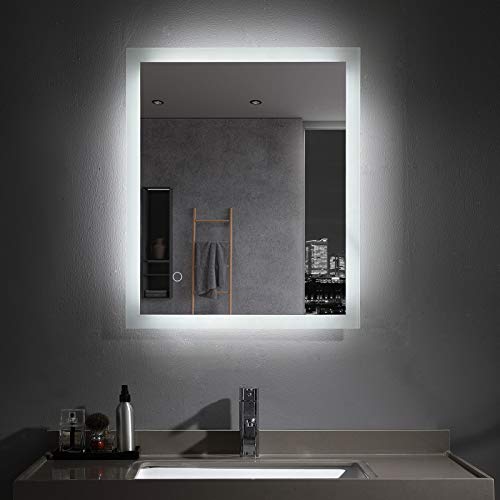 MIQU LED Specchio da bagno 80x60cm/600x800mm Interruttore touch & luce bianca(6500K)/Qualità eccellente verticale grande specchio parete/CRI90+ & IP44/Adatto per bagno,stanza da letto