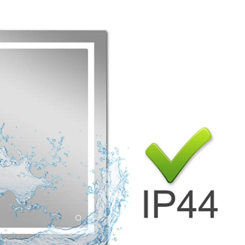 【Risparmio energetico e sicuro】: lo specchio da parete utilizza la moderna tecnologia LED a risparmio energetico con una lunga durata di 50.000 ore. Lo specchio da bagno è impermeabile IP44 per un uso sicuro