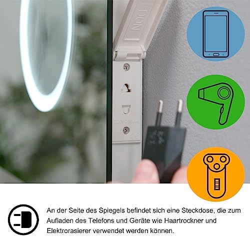 Specchio cosmetico: questo specchio da bagno è dotato di 1 specchio cosmetico (con ingrandimento 3x). Lo specchio è adatto per l'uso in bagni, bagni, camere da letto, soggiorni.