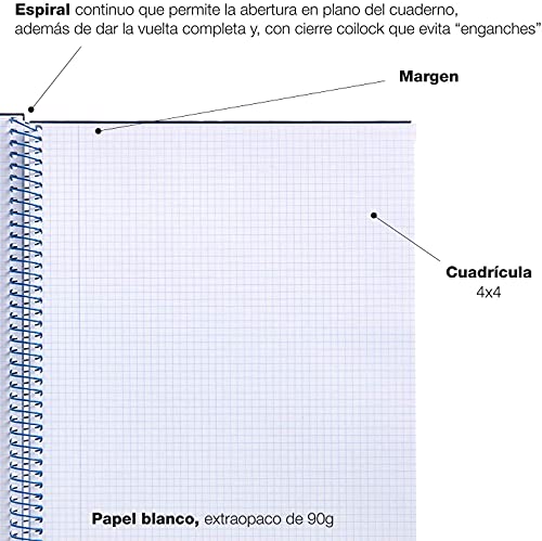 Quadricolo scolastico 4 x 4 mm. La stampa offset di alta qualità garantisce una maggiore sottigliezza e pulizia evidenziando la scrittura e quindi facilitando la lettura e lo studio.