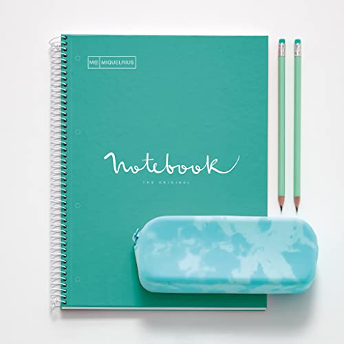 Miquelrius MR46667 - Quaderno A4-80 fogli 90gr - Puntini - 1 striscia colorata - Copertina rigida plastificata - Colore turchese