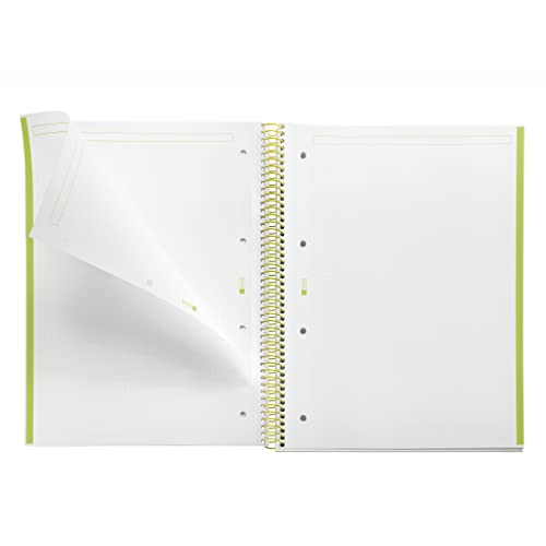 Copertine di cartone rivestito extra rigido, laminato opaco, che serve da supporto per la scrittura. La spirale Coilock previene gli strappi e permette un'apertura piatta. Colore verde lime